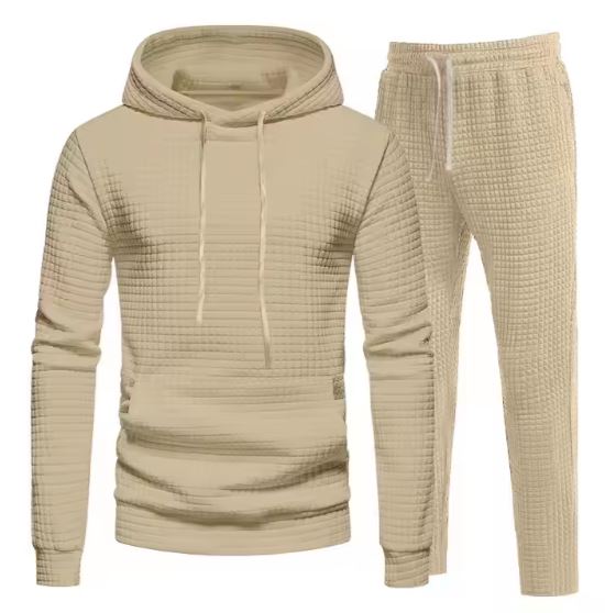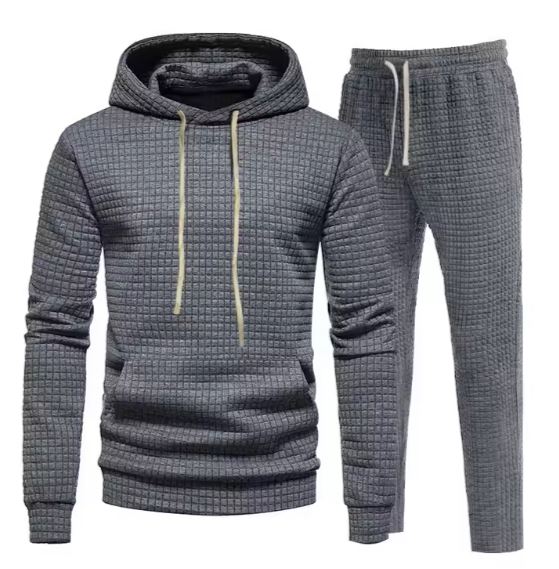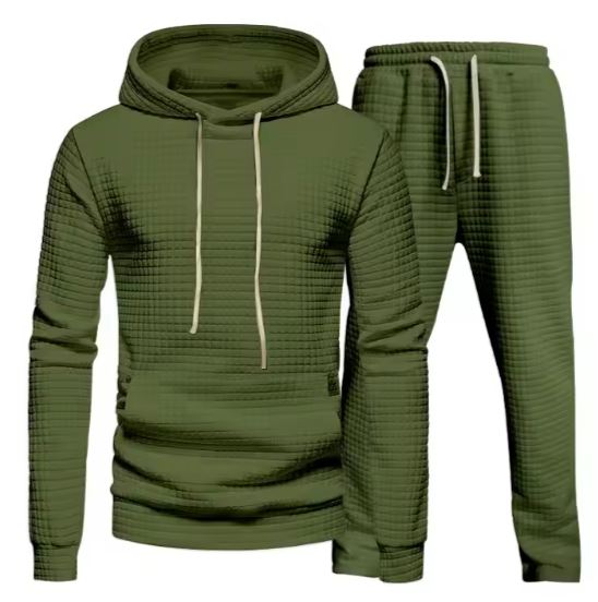 New Arrival Casual Plus Size Waffle Texture Hoodie Ttacksuit Men's Sets Sehe Fashion